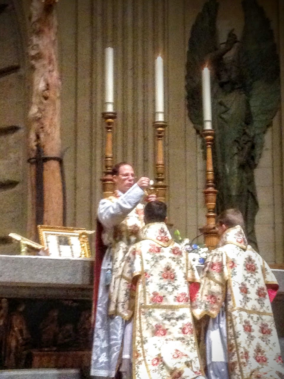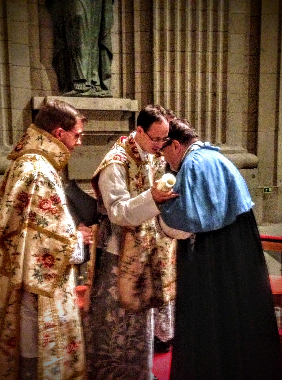 El sábado 28 de noviembre a las 12,30hs., bajo la majestuosa cúpula de la Basílica del Valle de los Caídos, tuvo lugar el cantemisa del Canónigo del Instituto, Don Federico de Martín Pazat, ordenado sacerdote el pasado día 2 de julio. Acompañados por el coro del Instituto en Madrid, de brillante y devota actuación; familiares, amigos y fieles del Instituto llenaron los bancos del templo para asistir a la solemne Misa tradicional, en la que Monseñor Wach, recién llegado a España, predicó sobre el sacerdocio católico. Antes de leer la bendición papal, el Fundador y Superior del Instituto de Cristo Rey Sumo Sacerdote recordó las especiales exigencias del camino al que Don Federico ha sido llamado a entregarse y la necesidad de sustentar estas vocaciones con la continua oración de los fieles. Acabada la Santa Misa, el misacantano impartió las bendiciones a los fieles, que besaron sus manos recién consagradas.